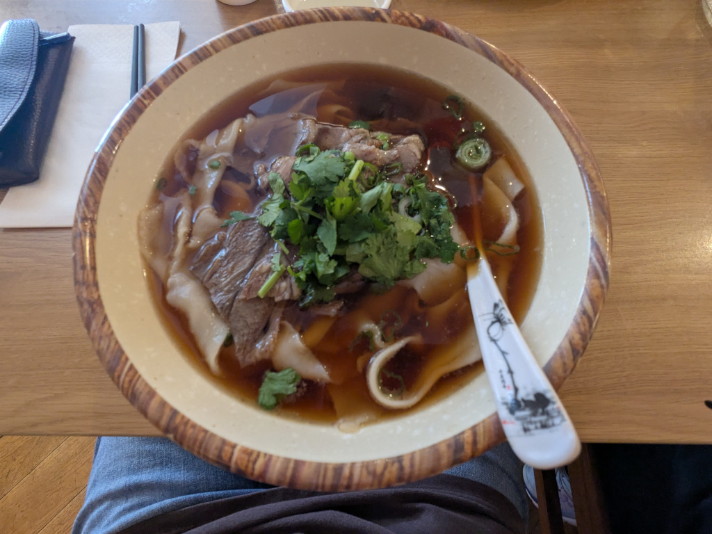 ![]() After leaving the museum, we were all quite hungry. We were hoping to get to Chinatown for a good Chinese meal, but as we were looking for it, we came across this place, Chang's Noodle. So we popped in for some hand-pulled noodles; I had a bowl of ็่้บต which was okay (the beef was sliced real thin, like in Vietnamese pho, which I found weird), and Mei-O had bowl of this (with lamb!) which, while the noodles were good, the meat and soup weren't. But at least we were now fed so we could continue on our quest. Next Top |