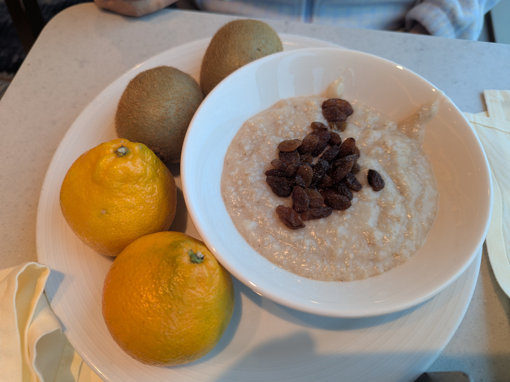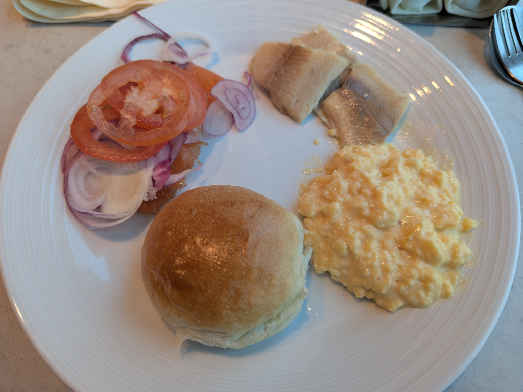 ![]() Since we weren't going to dock until around 11:00, we went to eat breakfast a little later than usual. For once, here's a picture of Mei-O's breakfast, much healthier than mine. In fact, I had a second plate of even less healthy stuff. Hey, I was on vacation. |