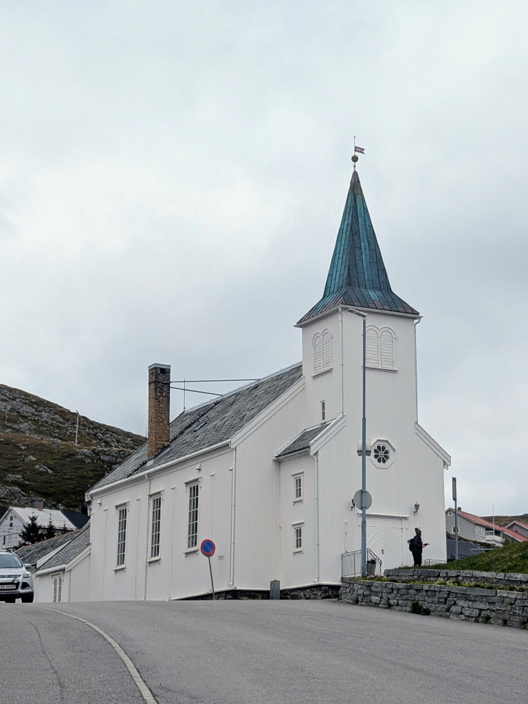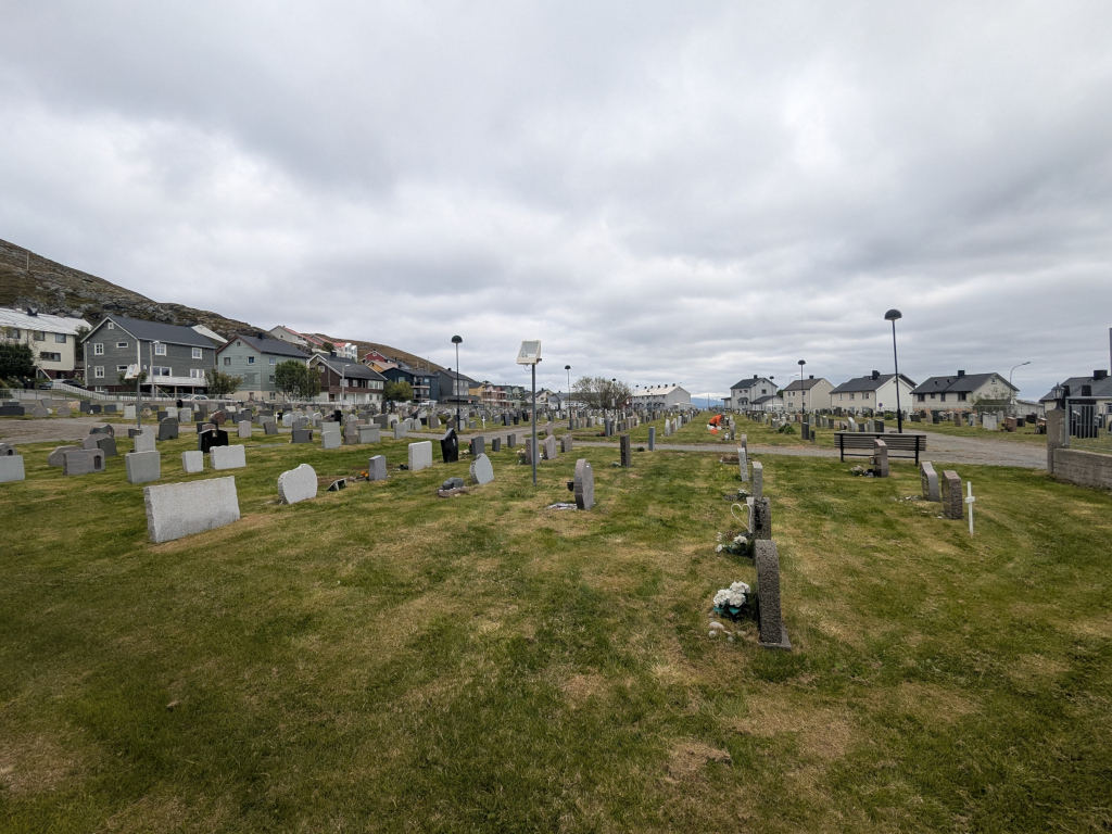 ![]() Our tour guide from our North Cape tour told us to go see this church, the Honningsvåg Church, as it had an important place in the town's history. As the occupying German forces were retreating from Honningsvåg in 1944, they employed a scorched earth policy, burning the entire city to the ground. Yet somehow, this was the only building that survived. Most of the area’s inhabitants were evacuated to southern Norway; the first people to return moved into the church which came to be used as a place to sleep, a storage area and a kitchen. People slept everywhere: on the pews, around the altar, under the pulpit, in the gallery and up in the tower. A temporary kitchen and bakery were set up where food was prepared and bread baked for over 100 people every day. Gradually, barracks were constructed for people to live in and by Christmas 1945 the church was finally able to be used for what it was actually intended. We had a rough time finding it, and when we did, it was unfortunately closed and locked and we couldn't get in. We did get a good look at its cemetery though. Next Top |