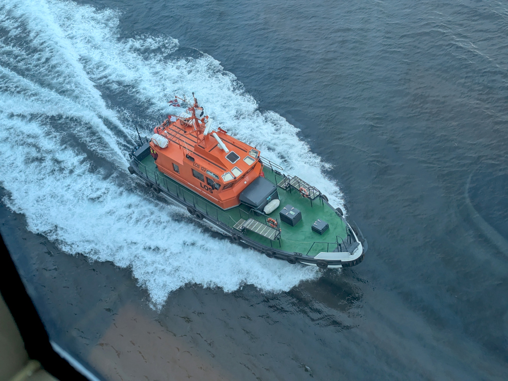 ![]() As we got closer, a pilot boat pulled up alongside us and dropped off a local pilot to help get us safely to the pier. |