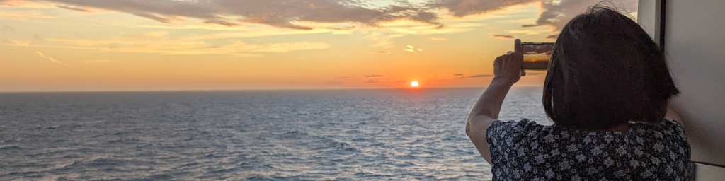 ![]() June 27, Mei-O on our balcony photographing the sunset. |