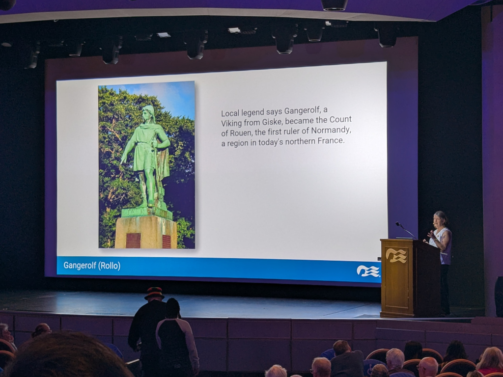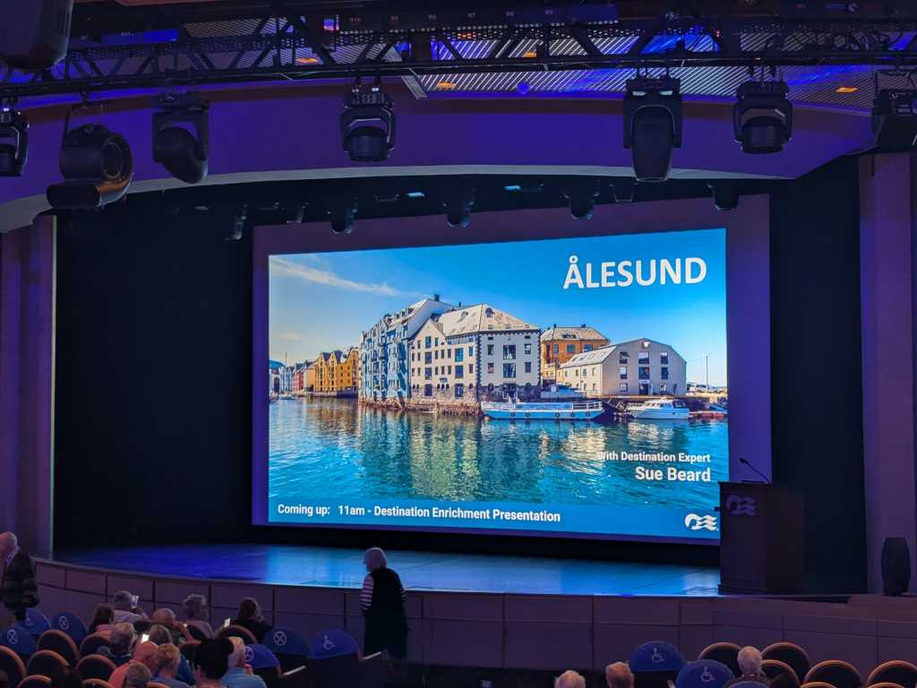 ![]() We had two more ports left, Ålesund and Haugesund, and at 11:00, we went to hear about them. We weren't looking for any specific information; we basically just wanted to pass some time. But we did get some interesting (though not very useful) information about both ports from the presentation. |