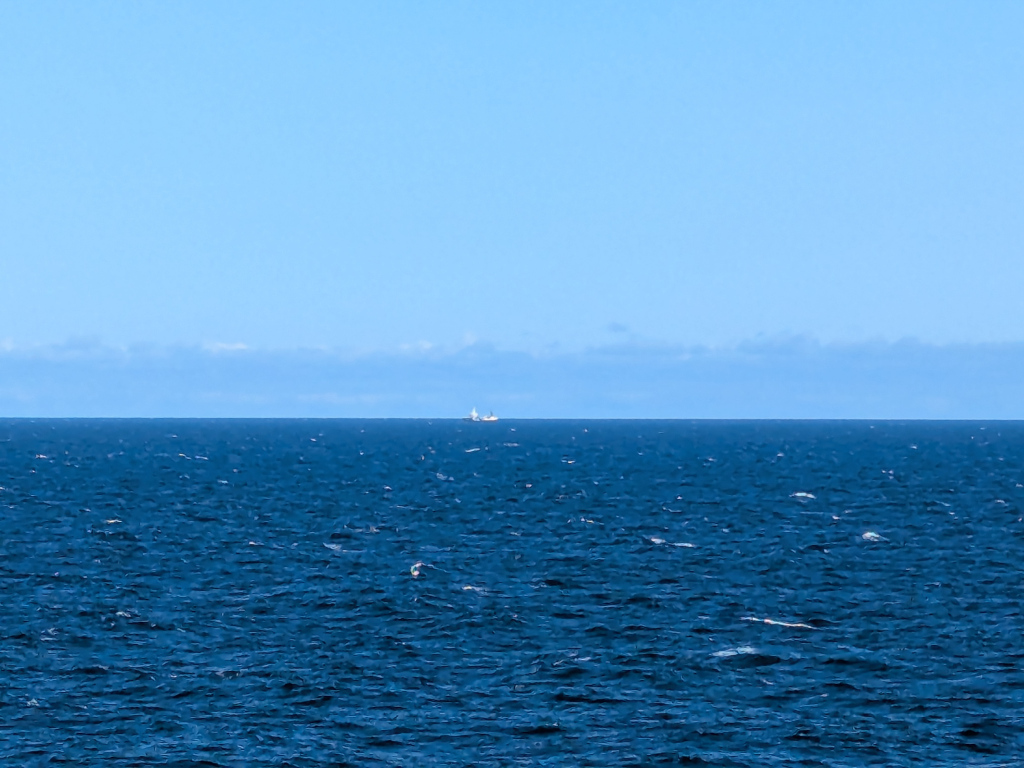 ![]() We woke up on this sea day morning with a lot of sea birds (0:29) following us. I'm not sure what that meant, if anything. (We weren't especially close to land.) |