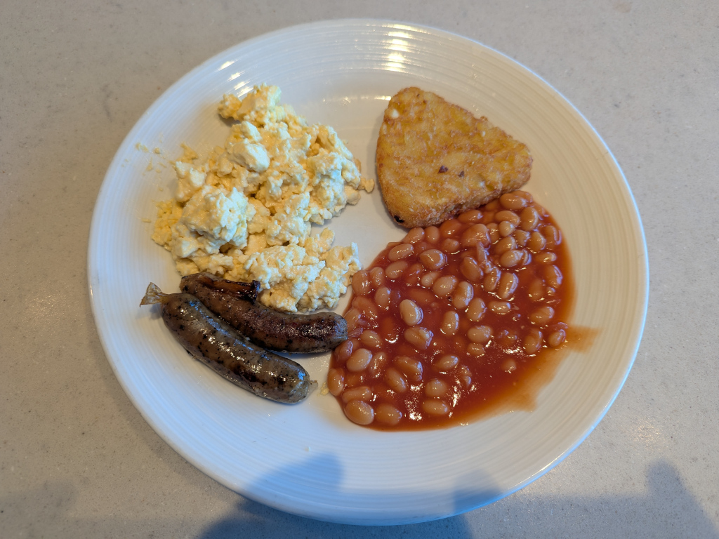 ![]() ...the buffet for something to eat. Baked beans were served every morning at breakfast, and we found out that they're a fairly common British breakfast itemnote a very common breakfast item in Britain. They are a staple of the traditional full English breakfast, often served on toast alongside eggs, bacon, and sausage. They are also frequently enjoyed on their own with toast, or as a side dish with other breakfast items. |