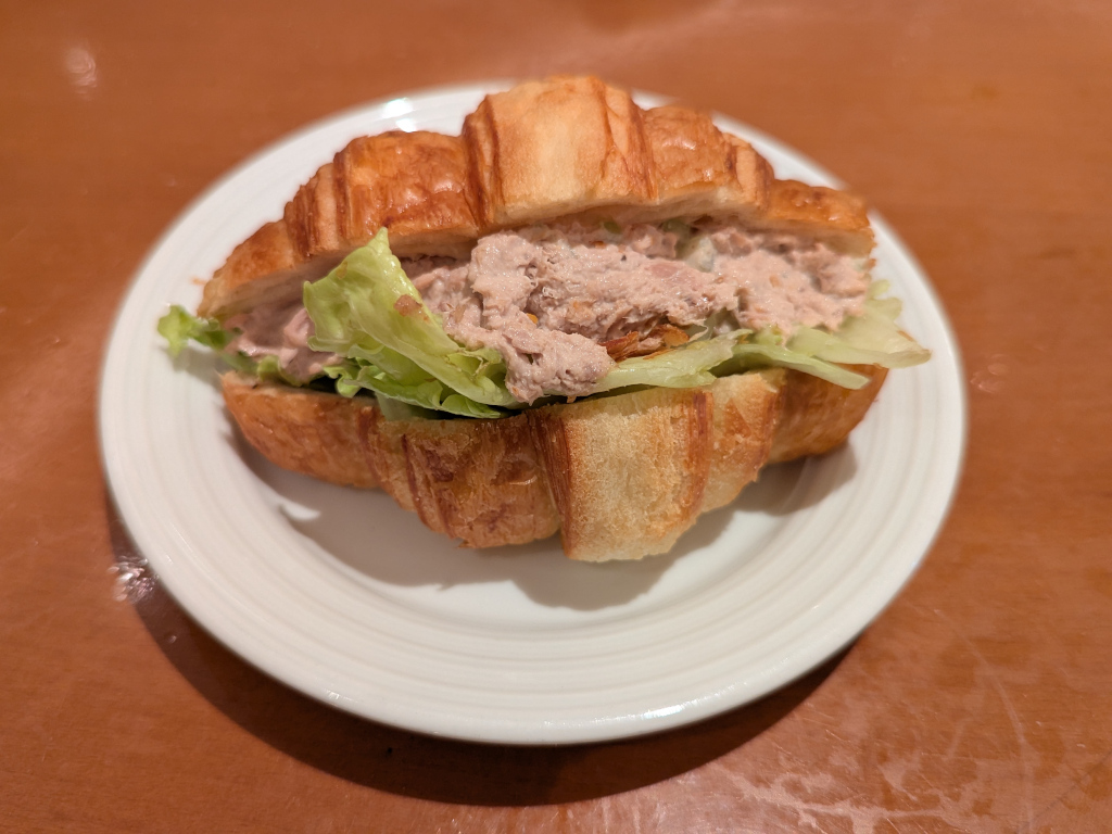 ![]() A little before 1:00, we made our way down to the Piazza for another dance class that Mei-O wanted to attend. The International Cafe, just off the Piazza, was another source of free food for us, and we hadn't tried it yet. We were just going to take a look to see what kinds of offerings they had, and Mei-O decided we should try this, tuna salad on a croissant roll, and it was really good. We put it in our mind that we should try this place more often! |