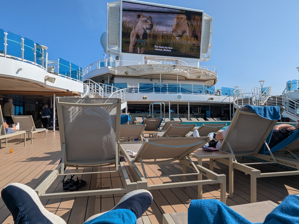 ![]() Mei-O and I went out on the pool deck to watch "The Lion King" (the new live version) for a while, then realizing we hadn't had breakfast yet, headed to... |