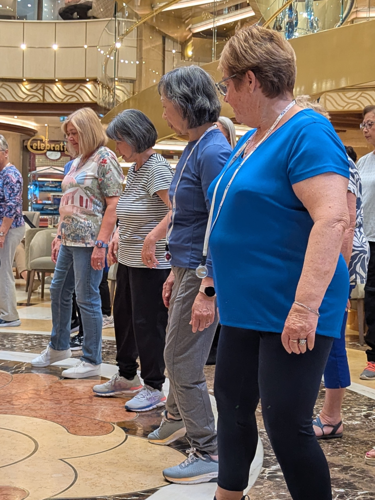 ![]() Today began with an early morning pickleball session. Even at 7:30 in the morning, Mei-O, Teresa, and Steve found other pickleball players at the courts sitting on the bench looking to form teams and play some pickleball. After each game, players would rotate in and others would sit it out waiting for their next turn. With two courts and only playing to 11 points, everyone got to play a lot of games, meeting new friends as they partnered up with other waiting players. |