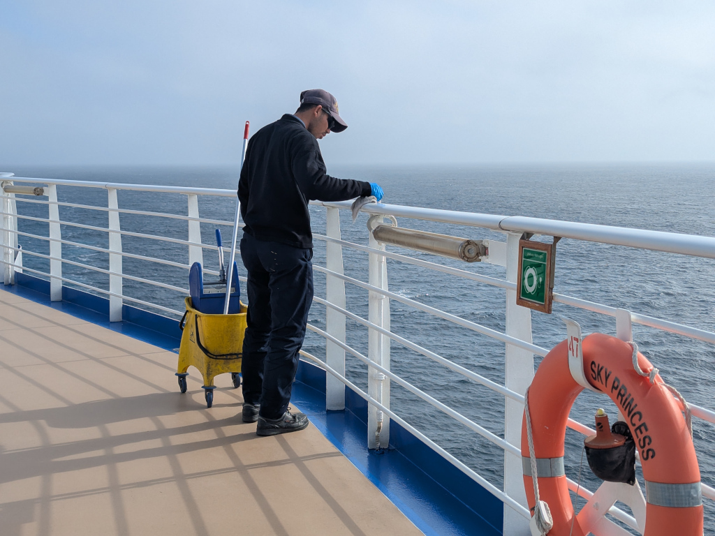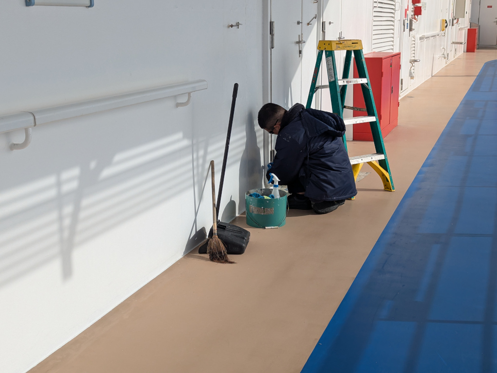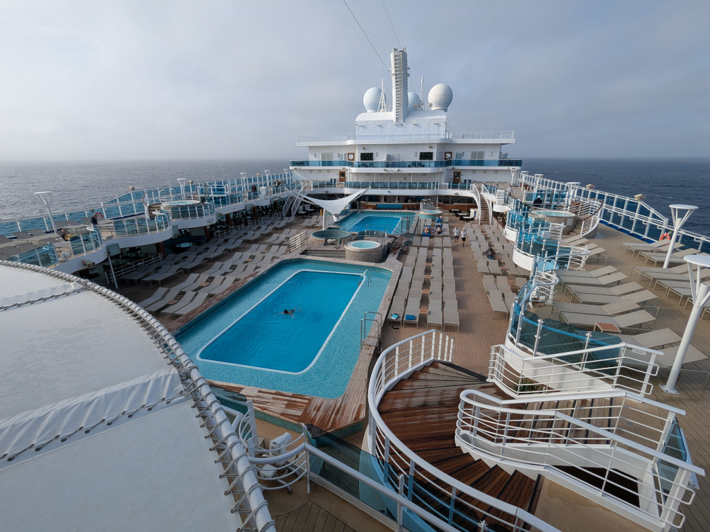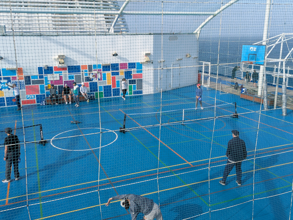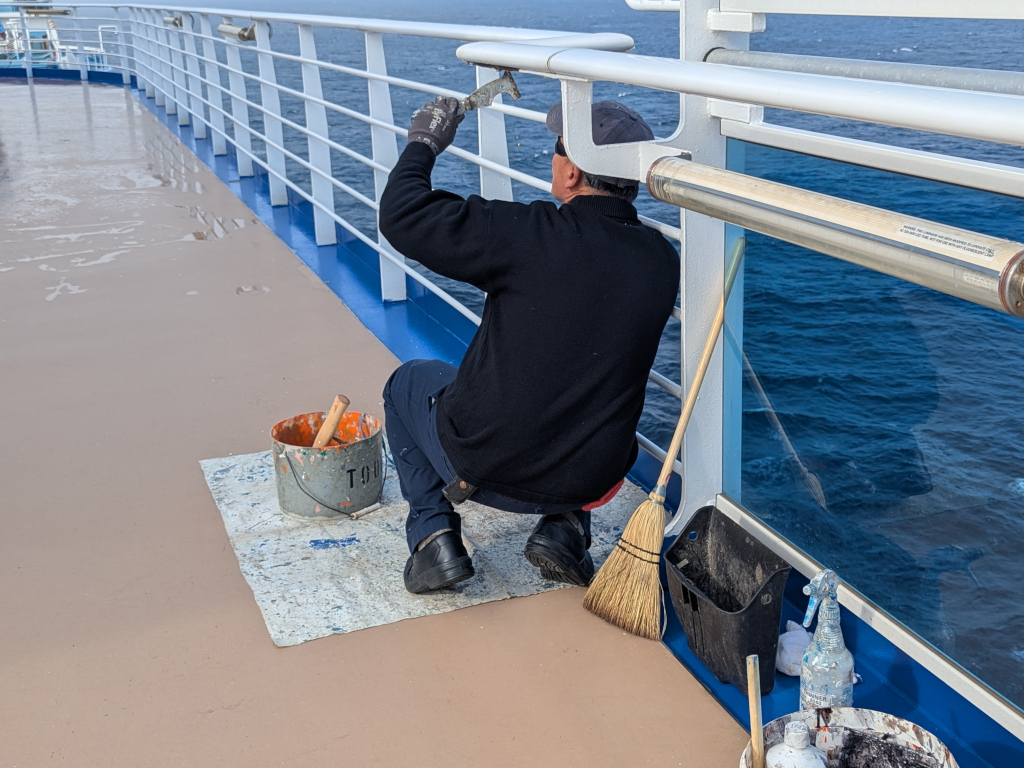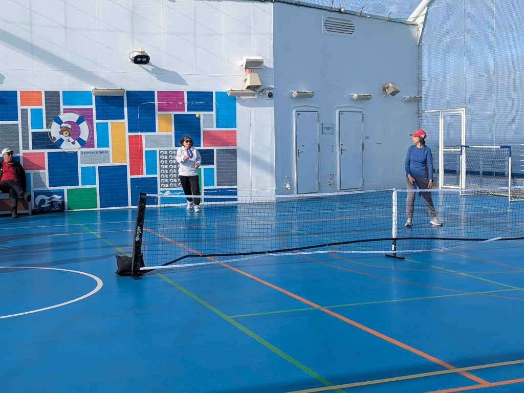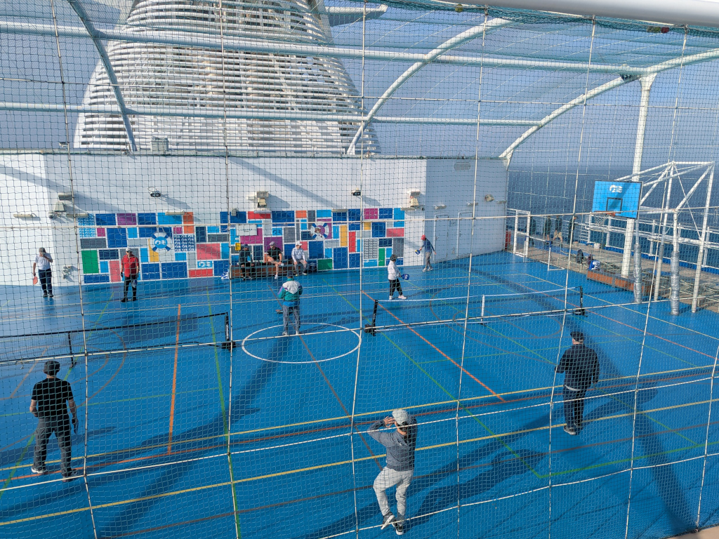 ![]() ...I did what I'd always do when I was on my own with nothing to do, I walked around the ship taking pictures of whatever I found interesting, including ship maintenance (a lot of it this morning. I suppose that's how they keep these ships in such good shape for so many years), the walking track which I joined, heading over to look down on the fairly quiet pool area, eventually making my way back to the pickleball courts to see how much longer the games would go on. |