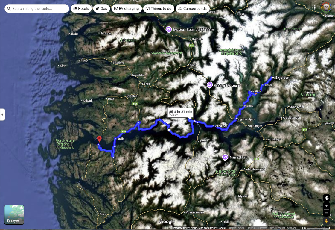 ![]() Back in our room, we took a selfie with Skjolden behind us, then got ready for.... |