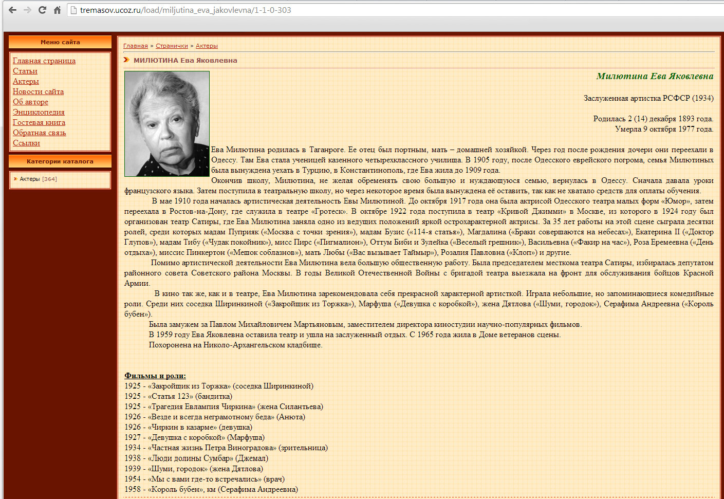 I got this information concerning my mom's sister, my Aunt Yeva, by searching for her name in Russian, Ева Милютина, on the Internetnote. I was thrilled when I found this page in Russian (which I've captured in the screenshot, below). To see Google's translation, simply click on the below screenshot. (Clicking on it again will toggle it back to Russian.) The translation is adequate; though there are some obvious translation errors, it's readable and understandable. I can't speak to the content, though I assume it is accurate.